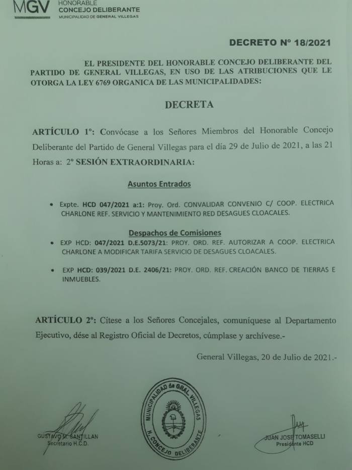 Por pedido del Bloque de Concejales de UCR-Juntos por el Cambio se llevara a cabo una Sesion Extraordinaria el dia 29, para tratar 3 temas que se necesitan con urgencia para la gestion Municipal.